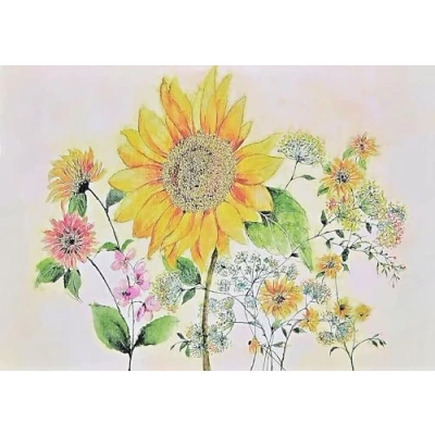 Watercolor Sunflower Note Cards (14 cards, 15 self sealing envelopes)