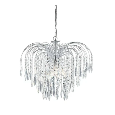 Waterfall 5 Light Crystal Chandelier Chrome Finish, E14