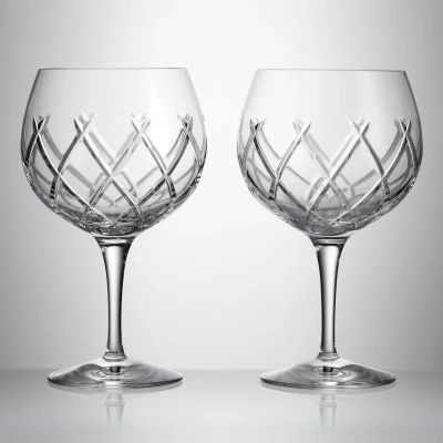 Gin Journeys is a collection created for the optimum Gin experience. Steeped in history with inspiration being drawn from Waterford's heritage to gin, dating back to the Victorian era. Waterford's striking range of gin glasses have been designed with tasting experts to help enrich the aromas and infuse the flavours of the botanicals. The Olann Balloon glass set of two are rounded with a short stem, perfect for gins with a high alcohol content, due to their bowl-like shape trapping the aromas inside the glass and allowing the spirit more room to breathe. Emulating a diamond stich, the Olann design is impressive while the shape allows enough space for garnishes and ice for the perfect gin cocktail or iced beverage. Capturing Waterford's rich Irish heritage and the trend in craft gins and sophisticated gin cocktails, this set blends old and new creating a fresh appreciation of this classic spirit.