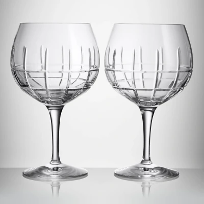 Gin Journeys is a collection created for the optimum Gin experience. Steeped in history with inspiration being drawn from Waterford's heritage to gin, dating back to the Victorian era. Waterford's striking range of gin glasses have been designed with tasting experts to help enrich the aromas and infuse the flavors of the botanicals. The Cluin Balloon glass set of two are rounded with a short stem, perfect for gins with a high alcohol content, due to their bowl-like shape trapping the aromas inside the glass and allowing the spirit more room to breathe. Featuring deep vertical and horizontal cuts these glasses allow enough space for garnishes and ice for the perfect gin cocktail or iced beverage. Capturing Waterford's rich Irish heritage and the trend in craft gins and sophisticated gin cocktails, this set blends old and new creating a fresh appreciation of this classic spirit. Presented in a sleekGin Journeys' gift box this makes an ideal gift.