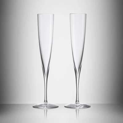 Celebrate in style with the finest Champagne in our Elegance Champagne Trumpet Flute Pair. These luxury crystal champagne flutes are expertly hand-crafted from the finest crystal by masterful artisans, highlighted by their divinely pulled stem â a crowning achievement of craftsmanship and a hallmark of a glamorous champagne vessel. Designed for a luxury champagne experience, their tall and slender profile concentrates the bubbles towards to rim, where they are preserved for your enjoyment. Flawlessly stylish, these luxury crystal flutes deliver sheer sophistication to dinner parties and social occasions.