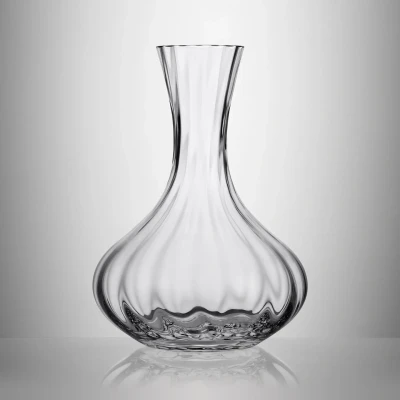Pour your beverage of choice in style with this Elegance Optic Carafe : a carefully hand-crafted serving vessel thatâs perfectly weighted and balanced for a luxury fine wine experience. The vertical lines create an enchanting optical aesthetic and are completely unique to each carafe - a hallmark of authentic craftsmanship. With its generously sized mouth and spacious bowl, the carafe allows for optimum aeration to elevate the flavours and aromas of your favourite wine, whilst its tall neck makes swirling effortless. With stunning form as well as function, this sleek pourer is a striking centrepiece for dinner parties and celebrations.
