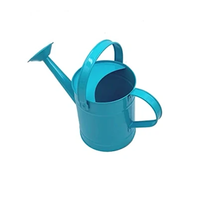 Watering can Blue holds 1.3 litre strong metal fixed rose