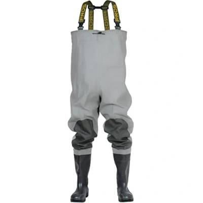 Reinforced knees chest waders with permanently welded high-quality wellingtons. Model made of waterproof, durable material providing adequate protection against water. Welding technique on both sides increases the durability of seams. An internal pocket makes it easier to store documents, phone or keys. Adjustable braces made of wide rubber offer convenient wearing. Chest waders for fishing, farming, duck hunting or even car washing. PLAVITEX HEAVY DUTY - a polyester-based material coated on one side with PVC. It is highly resistant to tearing and has waterproof stitching. Due to the coating's unique chemical composition, the material is extremely resistant to adverse weather conditions and bending at temperatures down to -50°C. The material meets the requirements of the EN 343 standard, which has been verified by tests conducted by a certified textile testing institute. Norms: EN ISO 13688 EN 343 EN ISO 20347 - OB SRC. Made in EU.