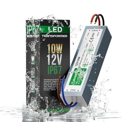 Waterproof LED Driver 12V IP67 Outdoor Power Supply, 10V Transformer for Strip Lights, Garden Lamps, and Landscape Lighting Durable & Safe, Ideal Wet Environments Installations