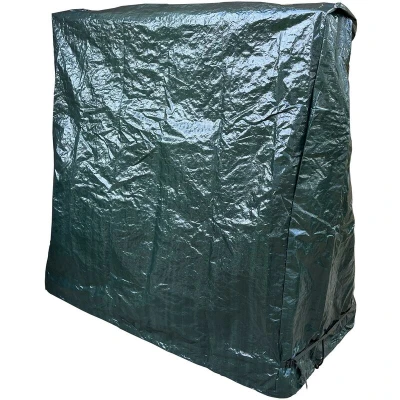 General description Protect your table tennis table from dust, dirt, and the elements with our waterproof cover. Made from 100gsm polyethylene, the cover is easily washable and folds away when not in use. Sturdy stitched seams add strength to the cover, and it can be fixed in place by way of a nylon drawstring and a strap with buckle for added security. Technical specifications Material: 100gsm polyethylene Dimensions: 165cm wide x 185cm tall Base depth: 70cm, tapering to 30cm at the peak Other information Metal eyelets for drawstring cord at base Waterproof design Easy to clean