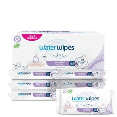 IDEAL FOR IRRITATED SKIN: Crafted to gently clean and soothe sensitive skin, these Sensitive+ Soothing unscented wipes have just four ingredients, including over 99% purified water, plus 2 botanical extracts. EVERYDAY USE ON SENSITIVE SKIN: When life plays dirty, WaterWipes plays it clean. Ideal for cleaning small messes and refreshing skin on-the-go, these disposable wipes make the perfect daily essential. 3-IN-1 SKIN CARE BENEFITS: Made using minimal ingredients, our wipes have a neutral pH range, which helps protect the natural skin barrier. 2X STRONGER: Upgraded for more versatility, WaterWipes are now thicker, softer & 2x stronger to tackle tougher messes while keeping the same, trusted purity. PURE & GENTLE FORMULA: WaterWipes unique 7 stage water purification, requires minimum ingredients, with 0% fragrance and alcohol. PLASTIC-FREE*, PLANT BASED WIPES: Suitable for eczema-prone skin, WaterWipes are Dermatologically Approved by the Skin Health Alliance and registered by the Vegan Society. DERMATOLOGIST TESTED FOR SENSITIVE SKIN: WaterWipes baby wipes are dermatologist tested and suitable for delicate or eczema-prone skin. Their gentle formula helps cleanse effectively while caring for skin that needs extra softness. EVERYDAY CARE WITH GENTLE INGREDIENTS: Made with over 99% purified water, plus 2 botanical extracts, WaterWipes baby wipes are ideal for daily messes. Their neutral pH refreshes sensitive skin and can soothe and calm skin up to 26%. *Claim does not refer to the full product lifecycle nor packaging. Wipes made from regenerated cellulose.