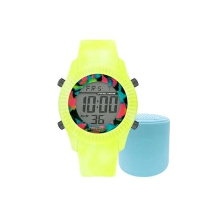 Watxandco Unisex Digital Watch Round LCD polycarbonate dial with digital movement With mineral glass Yellow Silicone Strap Water resistant to 5 bars