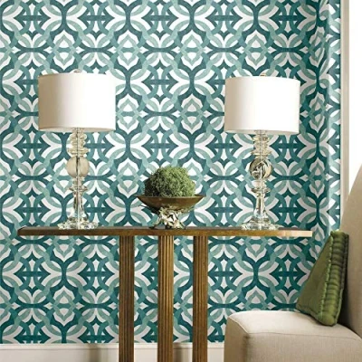 Waverly RMK11864RL Tipton Peel and Stick Wallpaper Teal White