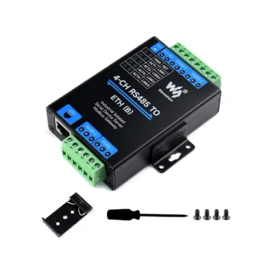 Waveshare 4 CH RS485 to RJ45 Ethernet Converter Module, Industrial Rail mount Serial Server, Modbus/MQTT/JSON Support,300 115200 bps Baudrate,10 / 100M auto negotiation connector