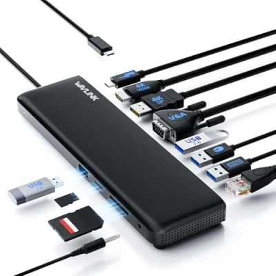 WAVLINK USB C Docking Station 3 Monitors, with HDMI, DP, VGA, 100W PD, USB3.0&2.0, RJ45, SD/TF Slots, Audio/Microphone for Lenovo/HP/Dell etc Black