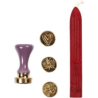 Wax seal set, D: 18 mm, heart, butterfly, clover, 1 set
