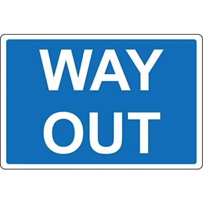 Way Out sign 1mm Plastic sign Digitally printed for extra durability Drill and screw in position or use double sided tape to mount onto suitable surface.