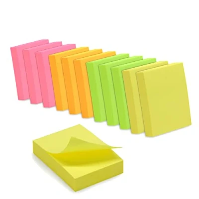 ✔️ 1200 x Sticky Notes in 4 assorted neon colours, to record important things and stick them where you won't forget them. ✔️ Pack of 12 mini pads of 100 sheets size 37.5 x 50 mm, a small format for marking up a folder, a book or noting corrections. Ideal for small reminders on the edge of the screen or on the desk. ✔️ Repositionable adhesive notes made of 75gsm thick paper. Sticky tape on the small side. Mini pad to stand on your desk or slip into a bag. Sticks easily to a screen, phone, desk, notebook and can be removed without leaving any residue. ✔️ 3 x 4 assorted neon colours: neon green, neon orange, neon yellow, neon pink. Bright colours for memos that will not be forgotten. ✔️ Dimensions (1 block): 37.5 x 50 x 10 mm