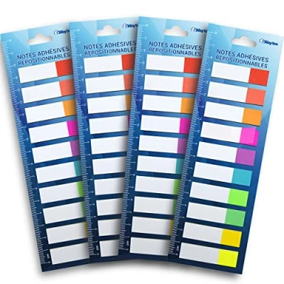 ✔️ 4 Packs of 200 Repositionable Self-Adhesive Bookmark Paper Bookmark for Annoting Books, Catalog, Folder. 10 x Assorted Color Blocks ✔️ White paper sticky bookmark with neon coloured end. Convenient for writing on the clearly visible white part and colour tab for easy and quick identification. ✔️ Set of 10 mini blocks of 20 coloured sheets arranged on a display stand that will allow you to store and transport them easily. You will also have access to the 10 colours quickly: red, brick, orange, pink, purple, turquoise, neon green, green, yellow, fluorescent yellow ✔️ Strong adhesive power. Sticks easily to paper, plastic, screen, phone, desk, notebook and can be removed without leaving any residue. ✔️ Dimensions (1 pad): 45 x 12 x 2 mm - Cardboard holder size: 19 x 6 cm