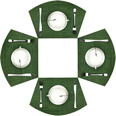 WAZAIGUR Wedge Placemats,Set of 4 Vinyl Placemats for Round Tables Woven Non Slip Heat Resistant Easy to Clean Wipeable Washable Dinner Table Mats(Seaweed Green)