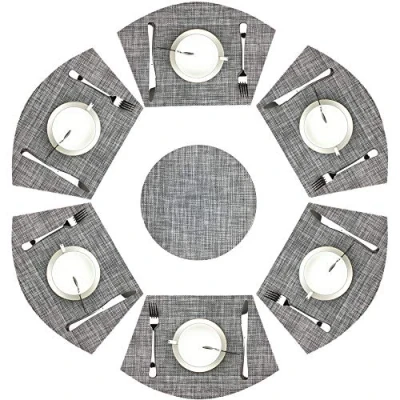 WAZAIGUR Wedge Placemats,Set of 7 Vinyl Placemats for Round Tables Woven Non Slip Heat Resistant Easy to Clean Wipeable Washable Dinner Table Mats(Gray)