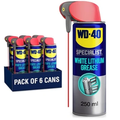 WD 40 Specialist White Lithium Grease 250ml x 6 pack All Weather Protection for Heavy Duty Metal to Applications with Smart Straw Applicator