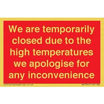 we are temporarily closed due to the high temperatures apologise for any inconvenience Sign