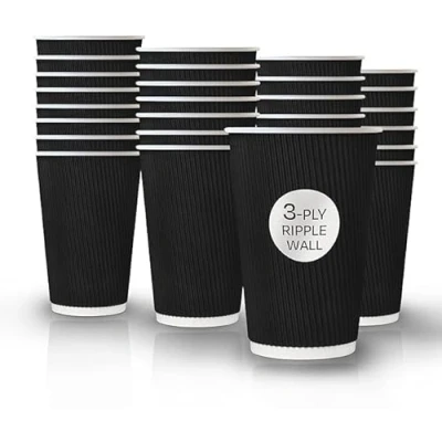 We Can Source It Ltd 12oz Disposable Kraft Ripple Paper Cups Insulated Black with 3 Ply Construction For Tea, Coffee, Hot Drinks 150Pc