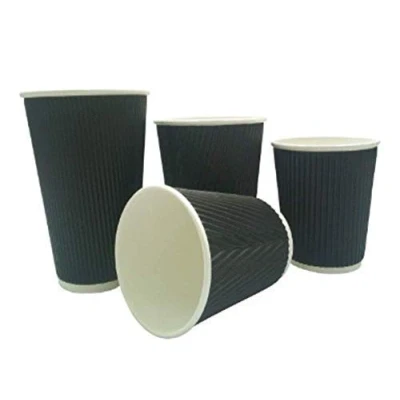 We Can Source It Ltd 12oz Disposable Kraft Ripple Paper Cups Insulated Black with 3 Ply Construction For Tea, Coffee, Hot Drinks 25Pc