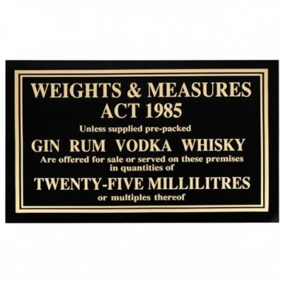 We Can Source It Ltd 25ml Weights and Measures Act Sign 1985 Pub Law Licencing Black with Gold Text For Pubs Bars Legal Measure of Gin, Rum, Vodka Whisky