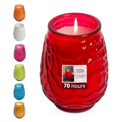 We Can Source It Ltd Low Boy Candles 70 Hour Burn Time For Home and Commercial Use Candle Wax Jars Red 24