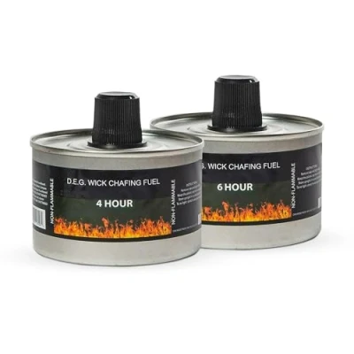 ππππ-πππππππ ππππ ππππ: Available in 4- or 6-hour burn time options. Each fuel canister provides up to 4 to 6 hours of consistent heat, making it ideal for extended catering events, buffet service, or parties. Keeps food warm and fresh throughout service without interruption. πππ π & πππ-π ππππππππ ππππππ: Made with pure Diethylene Glycol, this chafing fuel burns cleanly with a consistent flame. It's non-flammable in its liquid state, offering a safer alternative for busy kitchens and catering setups. ππππ-πππππ ππ-πππππππππ ππππππππ: Features a safe-to-touch metal container and a re-lightable wick, allowing full fuel use. Even when alight, the container remains cool, ensuring easy and safe handling during service. πππππππππ π ππ ππππππππ & ππππππ: Ideal for chafing dishes, bain-maries, fondue sets, marshmallow toasters, and more. Perfect for hotels, restaurants, outdoor events, and home entertaining. Compatible with most food warming equipment. πππππ & ππππ-π πππ πππππππ ππππππππ: Burns with a clean, low-odor flame that preserves the quality and aroma of your food. A reliable and efficient heat source thatβs suitable for both indoor and outdoor catering environments.