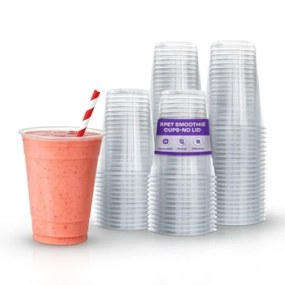 We Can Source It Ltd rPET Plastic Smoothie Milkshake Cups 20oz 100 Pack Dome Lid (with Hole)