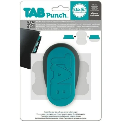 Customize your own tabs by using any colour or patterned paper (not included) with this tab punch. The 2-1/2 x 4 x 3 inch punch comes in a variety of punch out shapes (each sold separately). This package contains one tab punch and six tab stickers. Tab Punch We R Memory Keepers 71312-8 WR71312-8 WR71312-8 MPN 71312-8