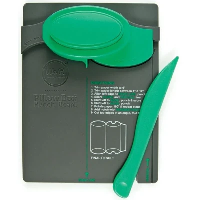WE R MEMORY KEEPERS-Pillow Box Punch Board. Use any paper to customize party bags in various lengths! Just punch and score. Create fold tabs and decorative edges with the two way punch. This package contains one gift bag punch board, one set of instructions, one two way punch and one scoring tool. Pillow Box Punch Board by We R Memory Keepers 71335-7 WR71335-7 WR71335-7 MPN 71335-7