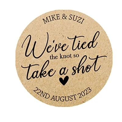 We Tied The Knot Shot Glasses Custom Wedding Favors Stickers Labels, take a Stickers, Glass Labels 24 Kraft (45mm)