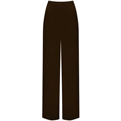 WearAll Ladies Palazzo Wide Leg Flared Elasticated Stretch Plus Size Plain Trousers Brown 12/14