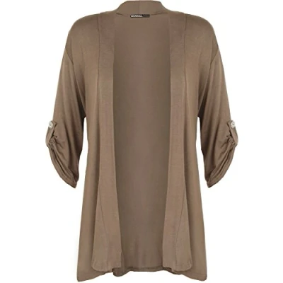WearAll New Ladies Plus Size Short Sleeve Button Open Cardigan Womens Stretch Top Mocha 24/26