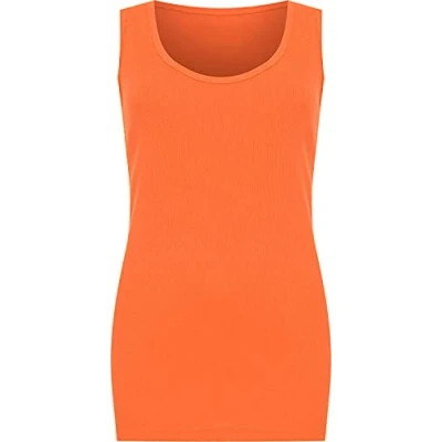 WearAll Pack of 2 Plus Size Womens Plain Ribbed Ladies Sleeveless Scoop Neck Vest Top Orange 26 28