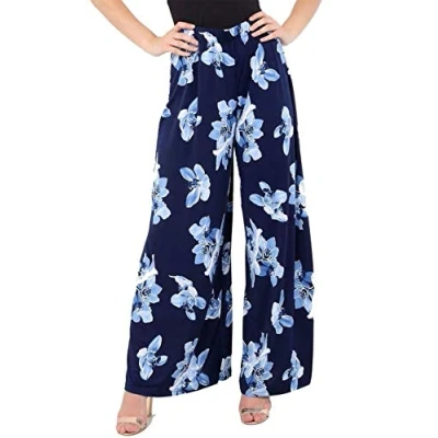 WearAll Plus Size Womens Floral Print Ladies Wide Leg Palazzo Trousers Pants Navy Blue 24 to 26