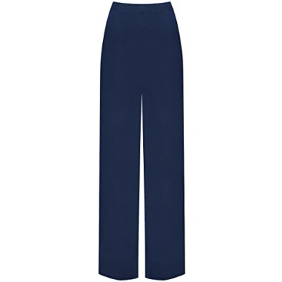 WearAll Plus Size Womens Plain Palazzo Wide Leg Flared Ladies Trousers Pants Navy Blue 20 22
