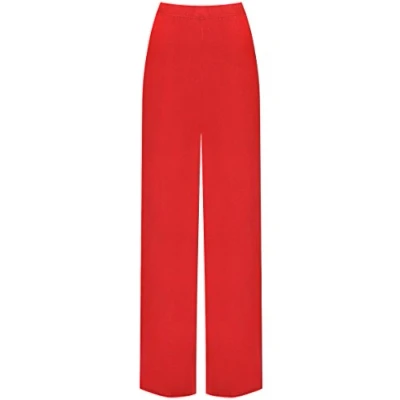 WearAll Plus Size Womens Plain Palazzo Wide Leg Flared Ladies Trousers Pants Red 24 26