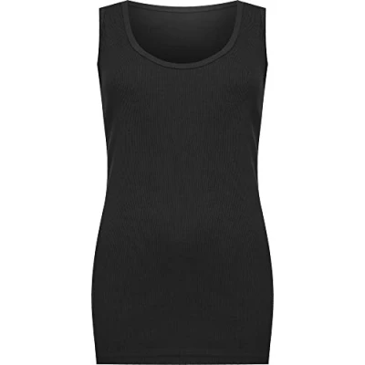 WearAll Plus Size Womens Plain Ribbed Ladies Sleeveless Scoop Neck Vest Top Black 18