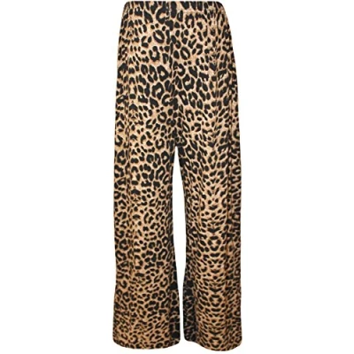 WearAll Plus Size Womens Print Ladies Wide Leg Palazzo Trousers Pants Brown Leopard 24 26