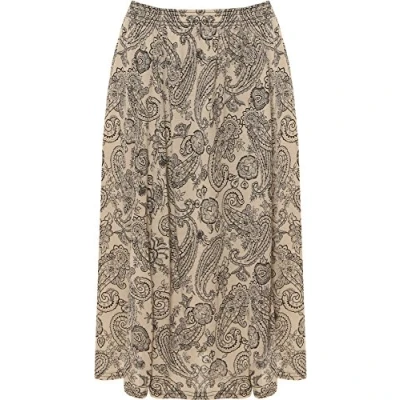 WearAll Plus Womens Paisley Print Midi Skirt Ladies Elasticated Stretch Waist New Stone 28 30