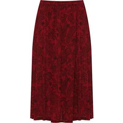 WearAll Plus Womens Paisley Print Midi Skirt Ladies Elasticated Stretch Waist New Wine 24 26
