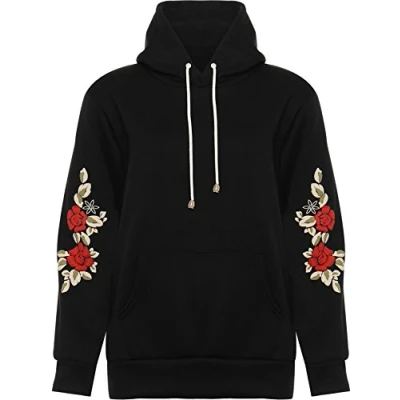 WearAll Women's Plus Floral Embroidered Pouch Pocket Long Sleeve Sweatshirt Ladies Hoodie Black 18 20