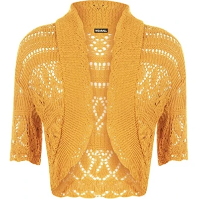 WearAll Womens Crochet Knitted Short Sleeve Ladies Bolero Cardigan Top Shrug Mustard 16 18