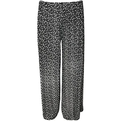 WearAll Womens Plus Size Floral Print Wide Leg Ladies Palazzo Trousers Pants Black White 20 22