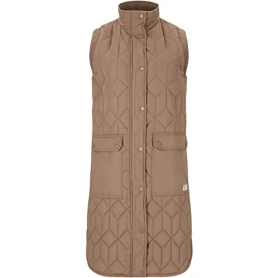 Long quilted vest from Weather Report from Denmark Windproof and breathable, perfect for transition temperatures Full-length zip with high-closing collar PFC-free and environmentally friendly With large, closable flap pockets