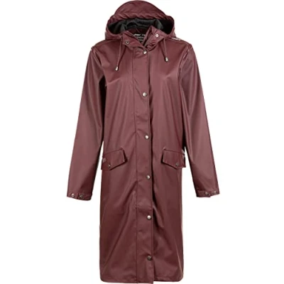 Raincoat for women from Weather Report from Denmark Made from functional and lightweight polyester PU Breathable, waterproof and windproof Taped seams and reflectors 2-way YKK zipper, adjustable hood, front pocket