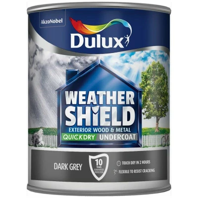 General description Weathershield Exterior Undercoat is specially formulated to resist cracking, providing the perfect key for the gloss topcoat. It offers guaranteed 6 year weathering durability when used as part of a full Weathershield exterior paint system and correctly applied as per the instructions for use. Technical specifications Volume: 750ml Coverage: 16m² per litre