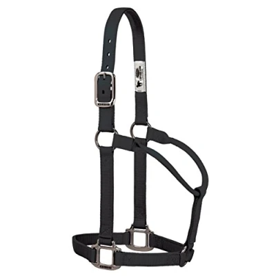 Weaver Leather 35 7385 BK Original Non Adjustable Nylon Halter with Chrome Plated Hardware, Black, 1" Average Horse