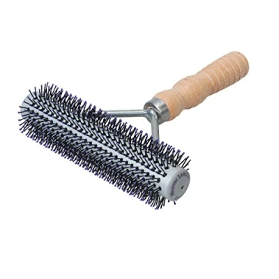 Strong, long-lasting bristles glide through leg hair or wool to lift and separate Barrel-shaped head is ideal for working around various angles and curves of the legs Ball-tipped bristles massage hide to stimulate hair or wool growth Wooden handle provides a comfortable grip 6" Wide Brush Head